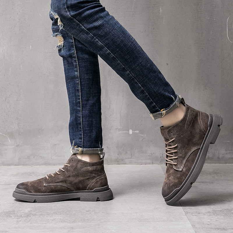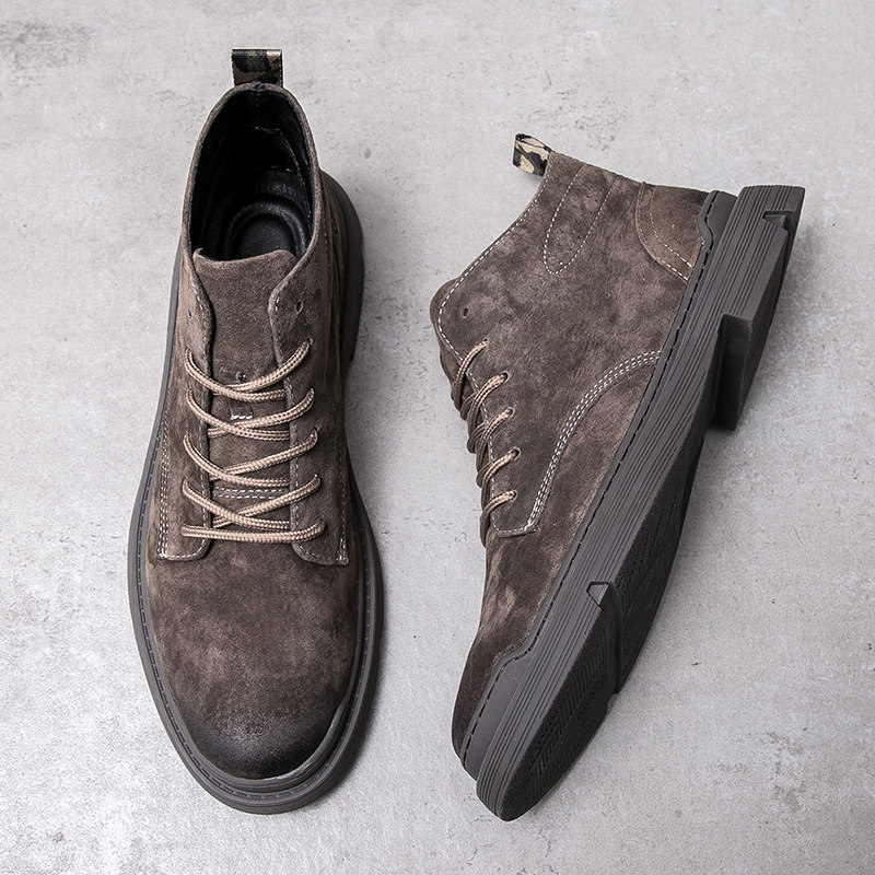 Martin boots men's leather British high-top shoes Korean version of the trend mid-top casual boots retro all-match tooling desert boots