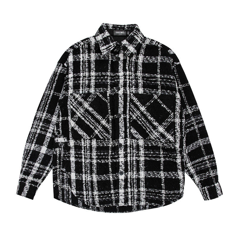 ITSCLIMAX medium and long version side slits black and white plaid tweed woven shirt jacket men and women with the same fashion brand