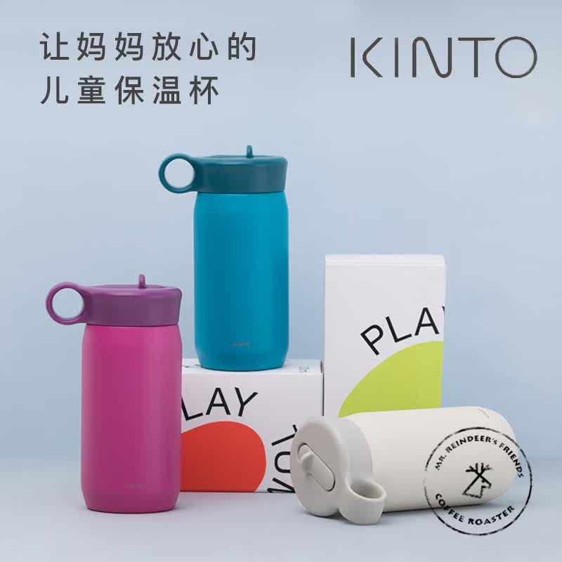 Japan Kinto Children's thermos cup straw Solid color simple water cup Portable leak-proof baby kindergarten kettle