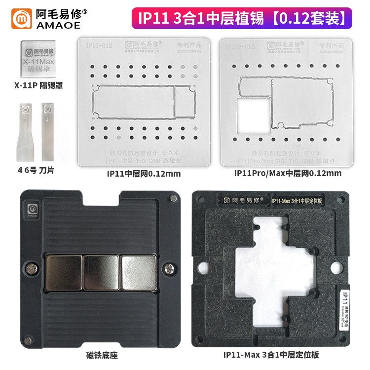 Amao Easy to fix iPhone11 11Pro Max A13 planting tin mesh midlayer network A13CPU IP11 steel mesh