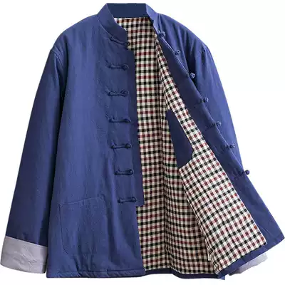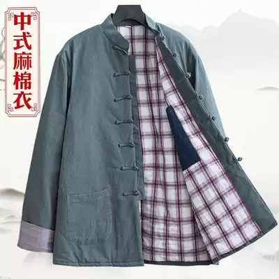 Tang suit male Winter cotton coat middle-aged and elderly thickened cotton-padded jacket warm coat cotton linen Chinese style Chinese button cotton suit