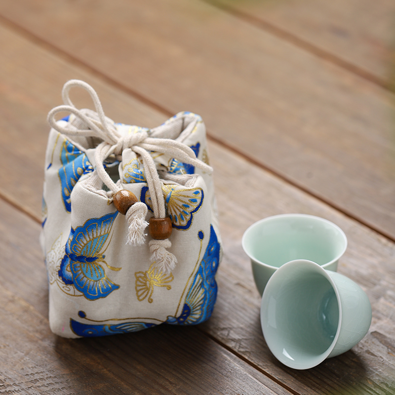 Portable Handmade Thickened Cotton Linen Tea Cup Tea Cup Bag Kung Fu Tea Set Master Cup Single Cup Beam Mouth Storage Bag