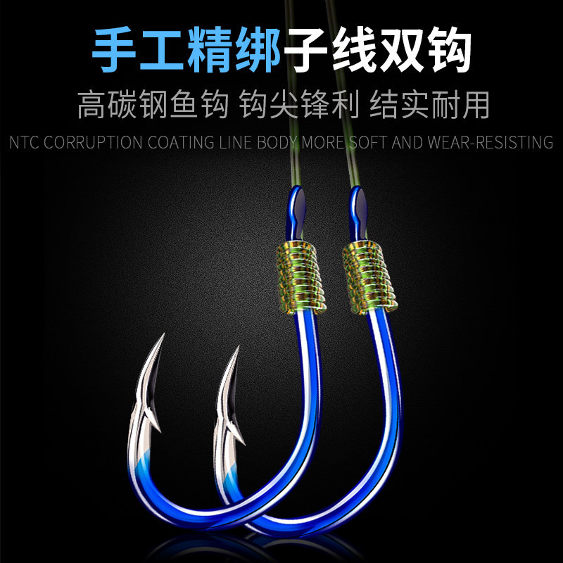 Sea battle sub-line double hook hook set combination tied to the finished product New Kanto Iseni barbed fishing fishing gear with or without barbs