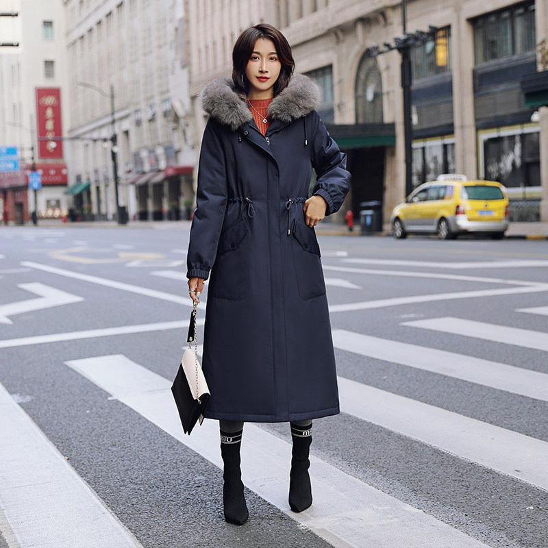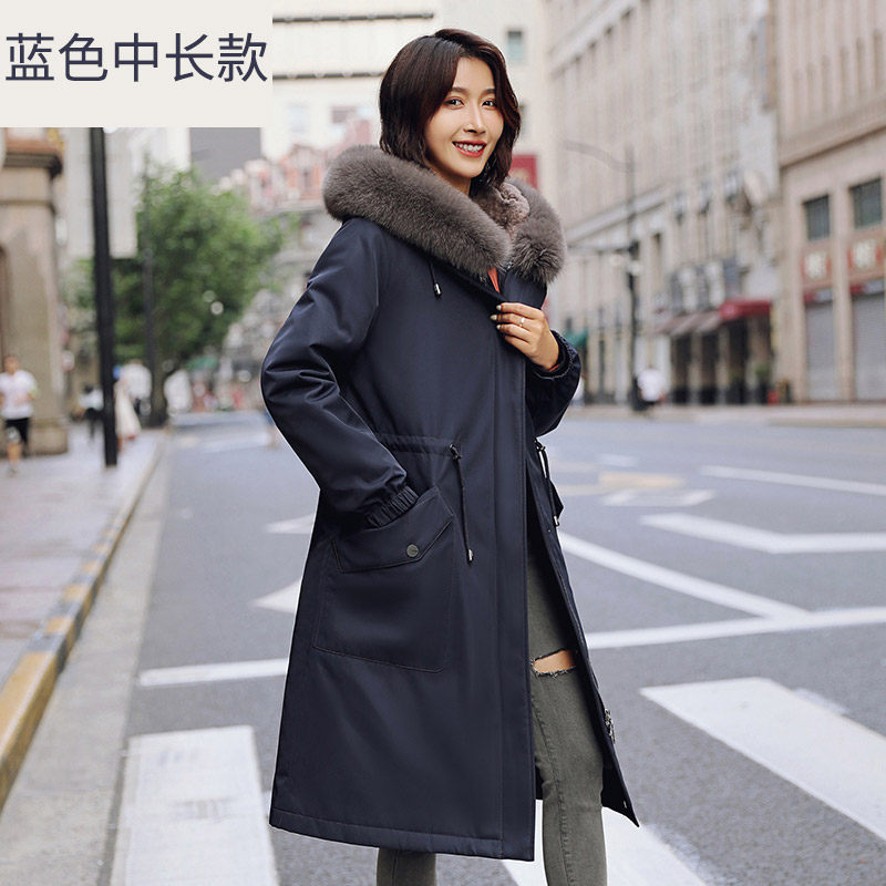 Long version pie overcome women's 2022 winter middle-aged and elderly women's leather jacket women's fur over-the-knee coat