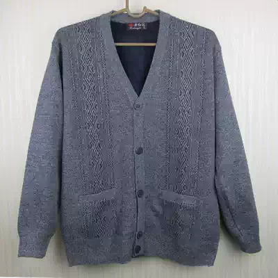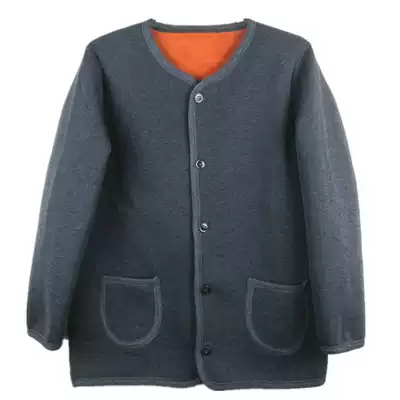 Elderly men's warm jacket cardigan plus velvet inside and outside wearing knitwear round neck Old Man shirt grandpa buckle cotton coat