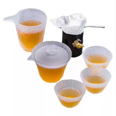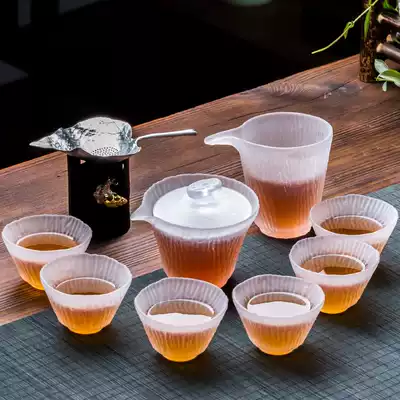 Japanese glass Kung Fu tea set Household heat-resistant glass tea pot cover bowl Cloud hammer pattern tea cup thickened