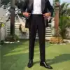 Mr Lu San homemade spring Korean version of light luxury high waist slacks Solid color British slim dress hemmed long pants