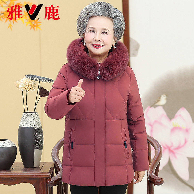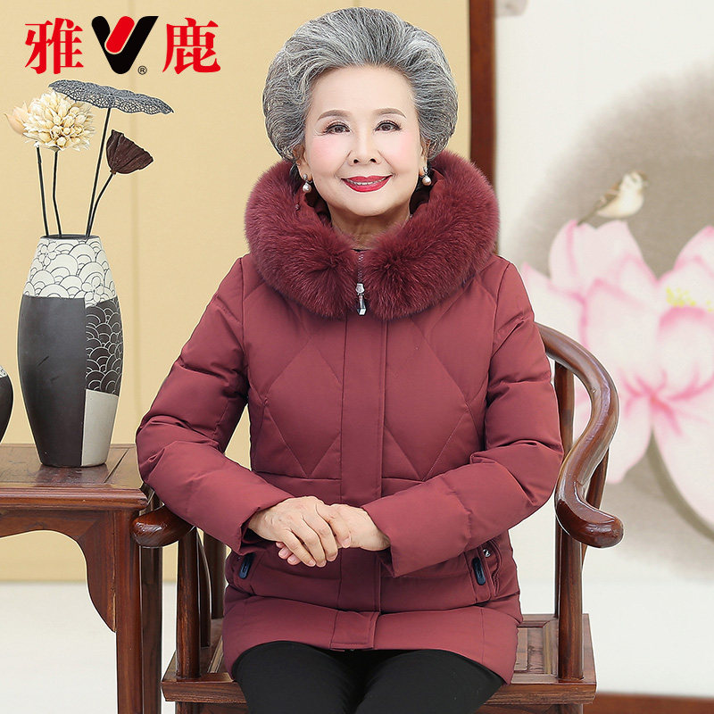Yalu elderly mother down jacket female short granny outfit quilted jacket Old man jacket clothes old woman winter clothes