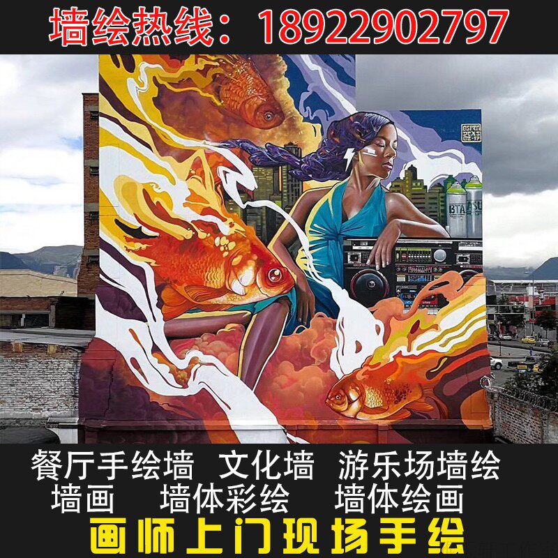 Guangdong Cultural Wall Wall Painted Door Hand-painted Custom Mural Wallpaper Graffiti 3D Land Drawing Kindergarten Dining Room Color Plotter