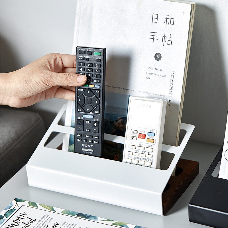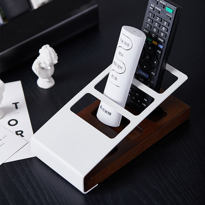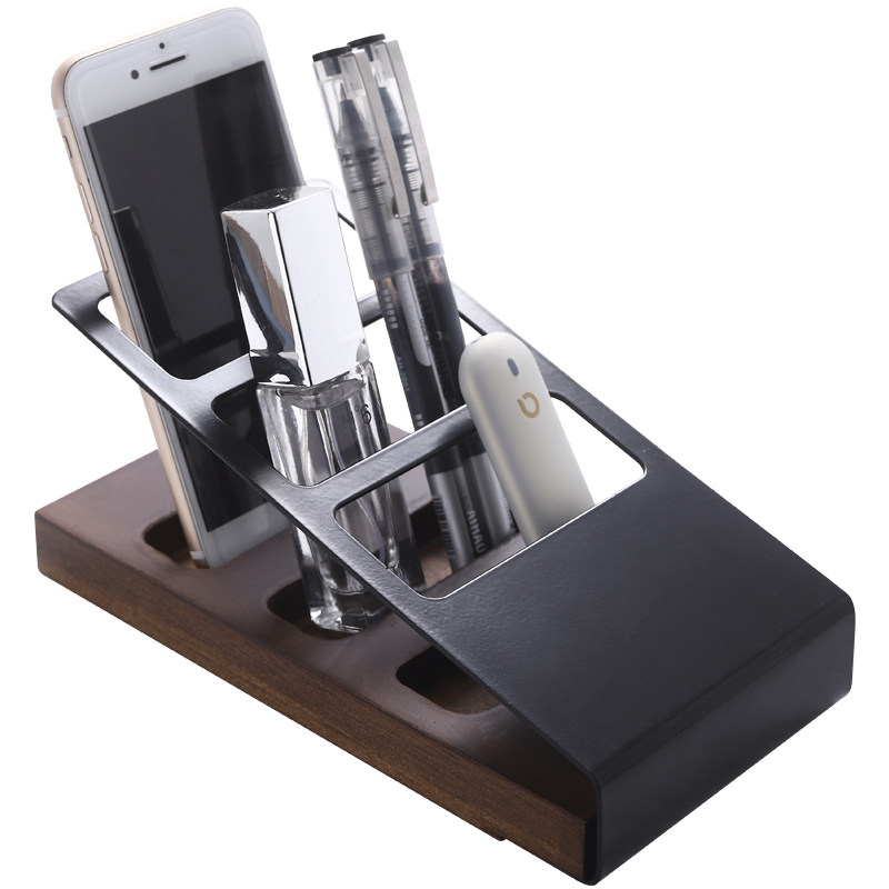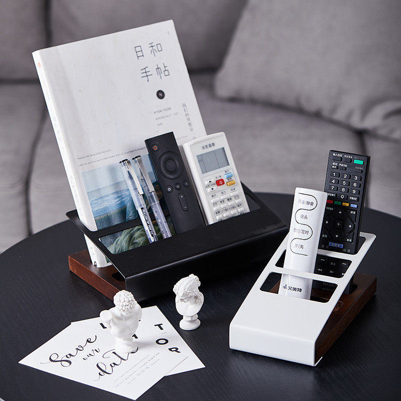 Porcelain wood one Nordic desktop living room Solid wood Wrought iron remote control rack Creative multi-functional mobile phone stationery storage box