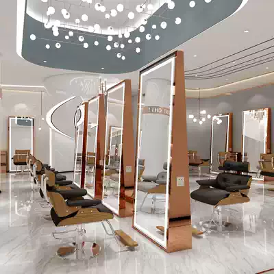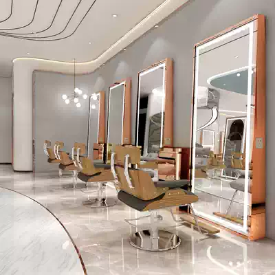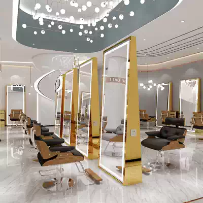 Net red shop mirror, floor-to-ceiling hair salon dedicated single-sided hairdressing mirror stainless steel with lamp hanging wall mirror