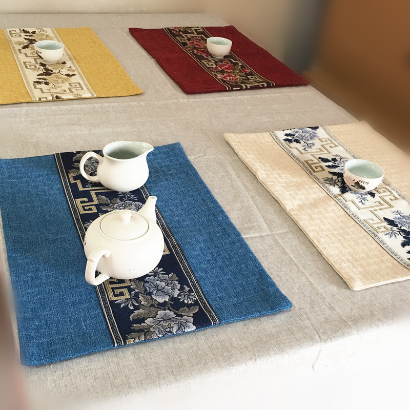 Chinese cotton and hemp long heat insulation tea mat Table mat Household bowl mat Heat insulation mat Anti-scalding high temperature Chinese and Western placemats