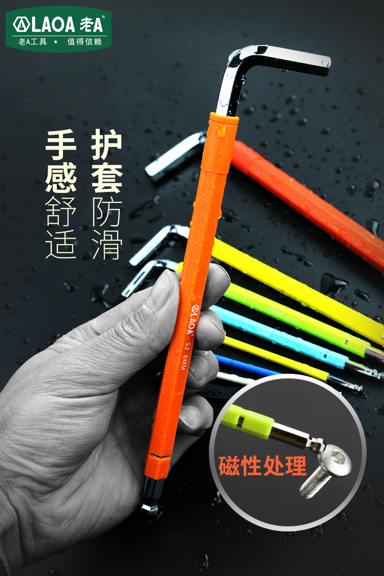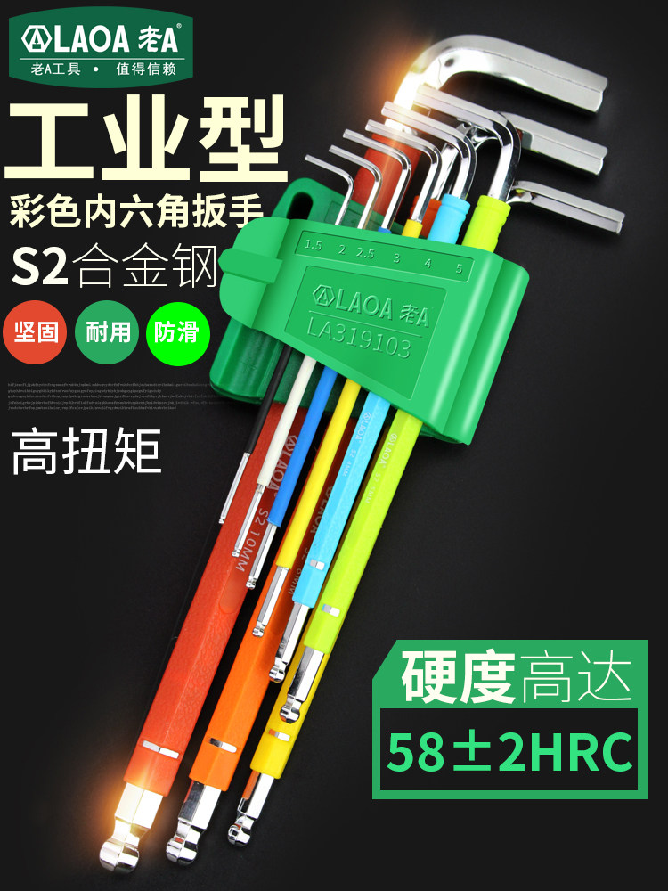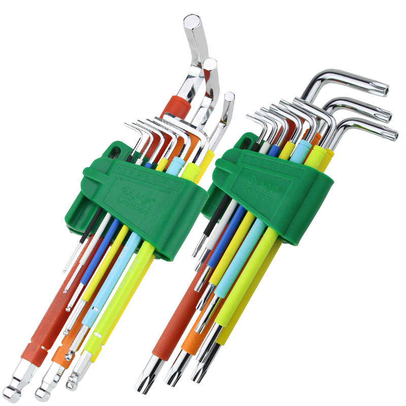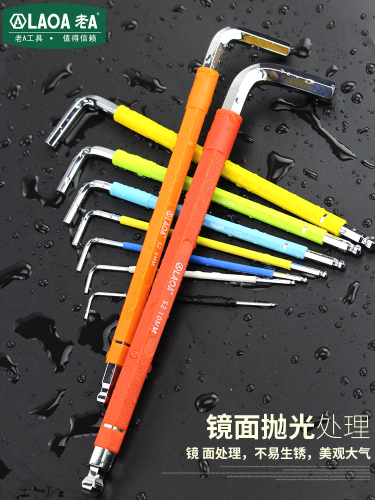 Old A S2 rainbow ball head screwdriver tool lengthened six-sided plum blossom 9 pieces inner hexagon wrench suit combination