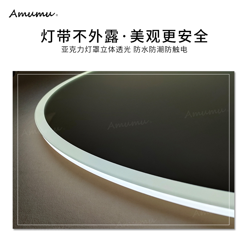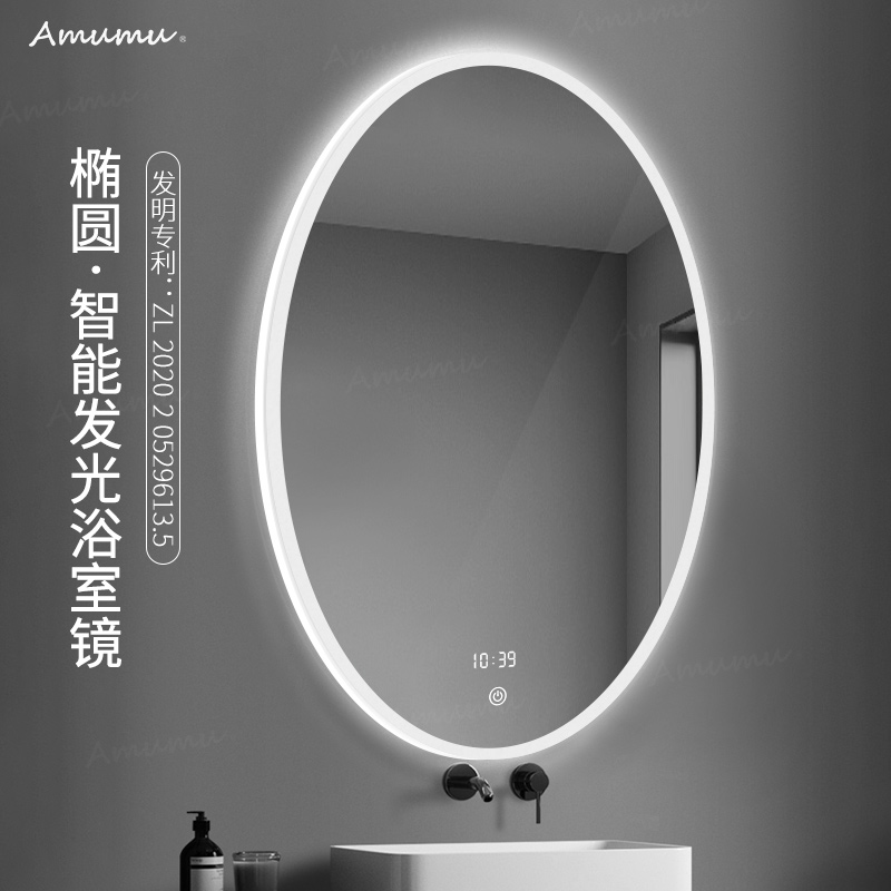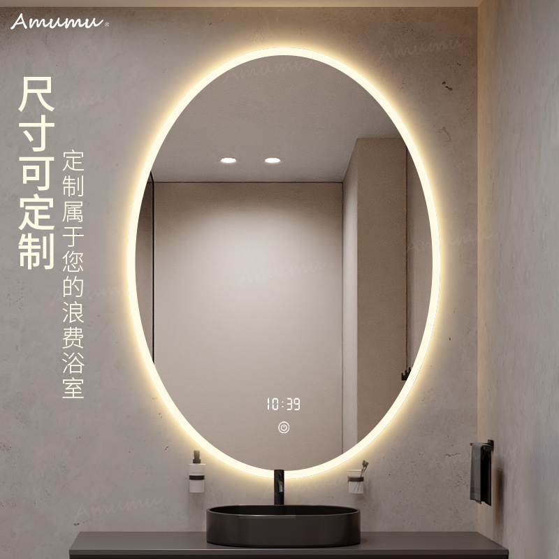 Oval Bathroom Mirror Led Luminous Make-up Room Anti-Fog Hanging Wall Makeup Bench Mirror Intelligent Makeup Big Round Mirror Hanging Wall