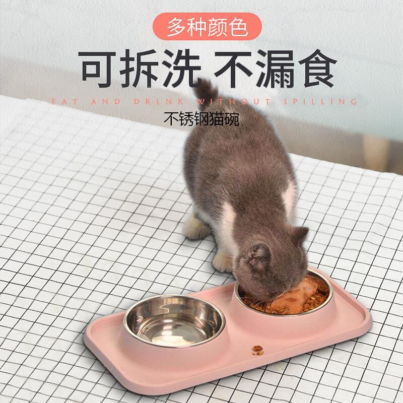 Cat Bowl Double Bowl Cat Food Bowl Stainless Steel Dog Bowl Feed Bowl Pet Supplies