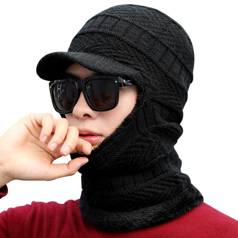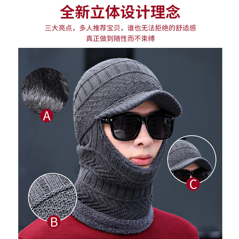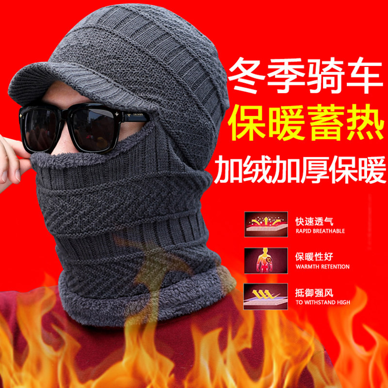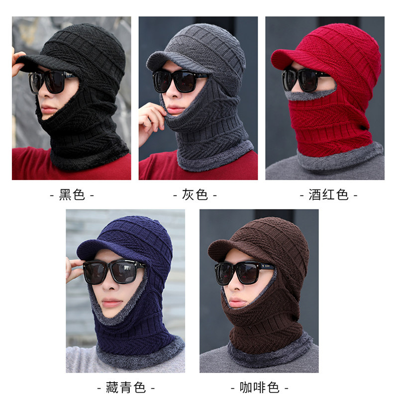 Men's hat autumn and winter Korean version of the knitted one-piece hat scarf one plus velvet thick cycling cotton hat wool hat trend