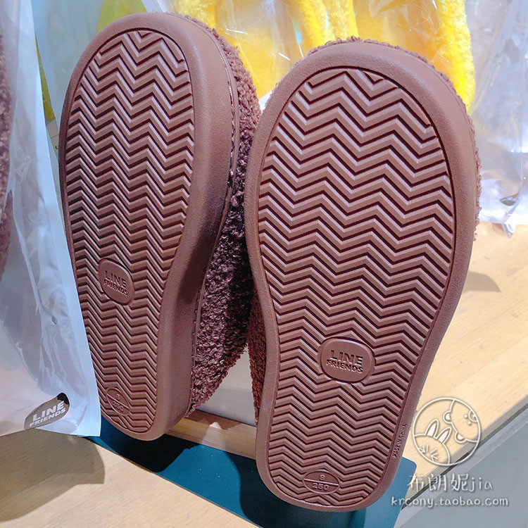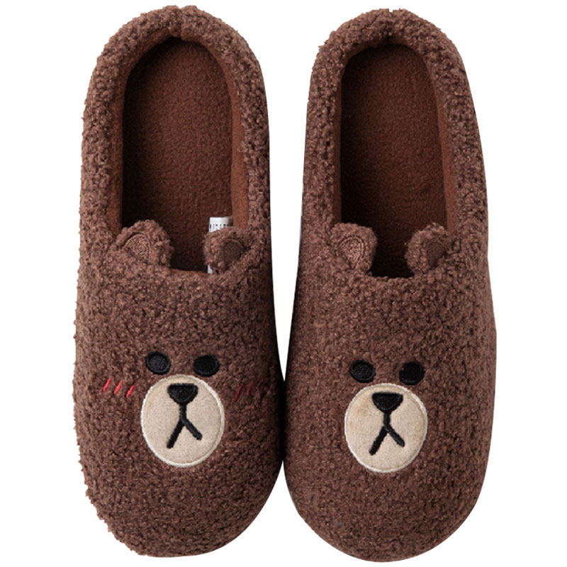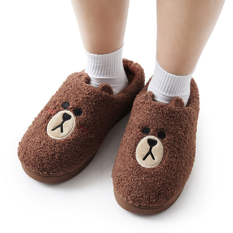 Korea LINE FRIENDS Brown Bear Roll Plush Cotton Slippers Baotou Flat Bottom Non-slip Home Couple Slippers