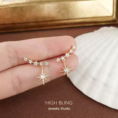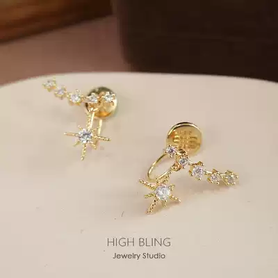 HighBling no pierced ears must-enter zircon eight-pointed star ear needle earrings female silver needle painless mosquito coil ear clip