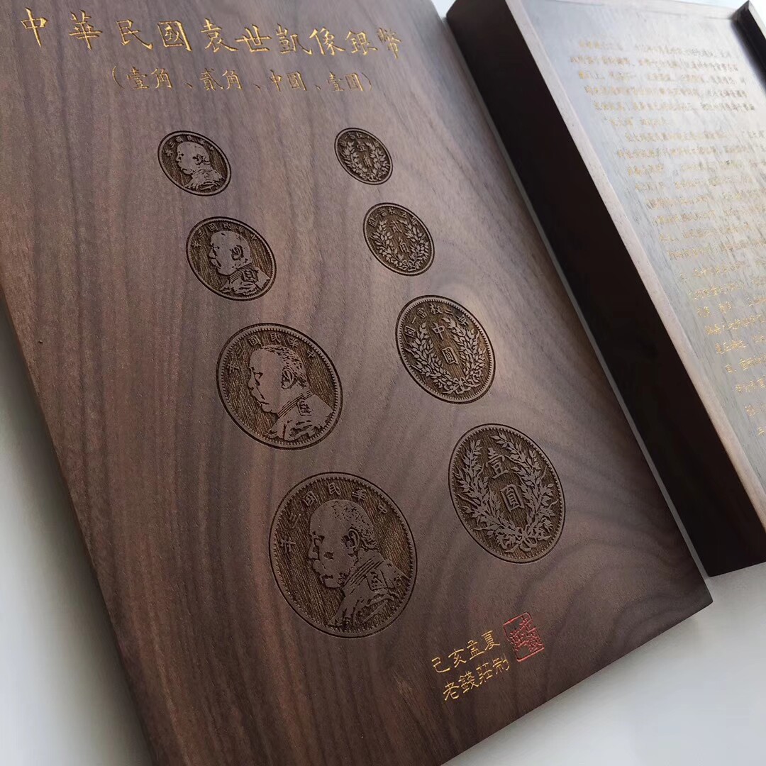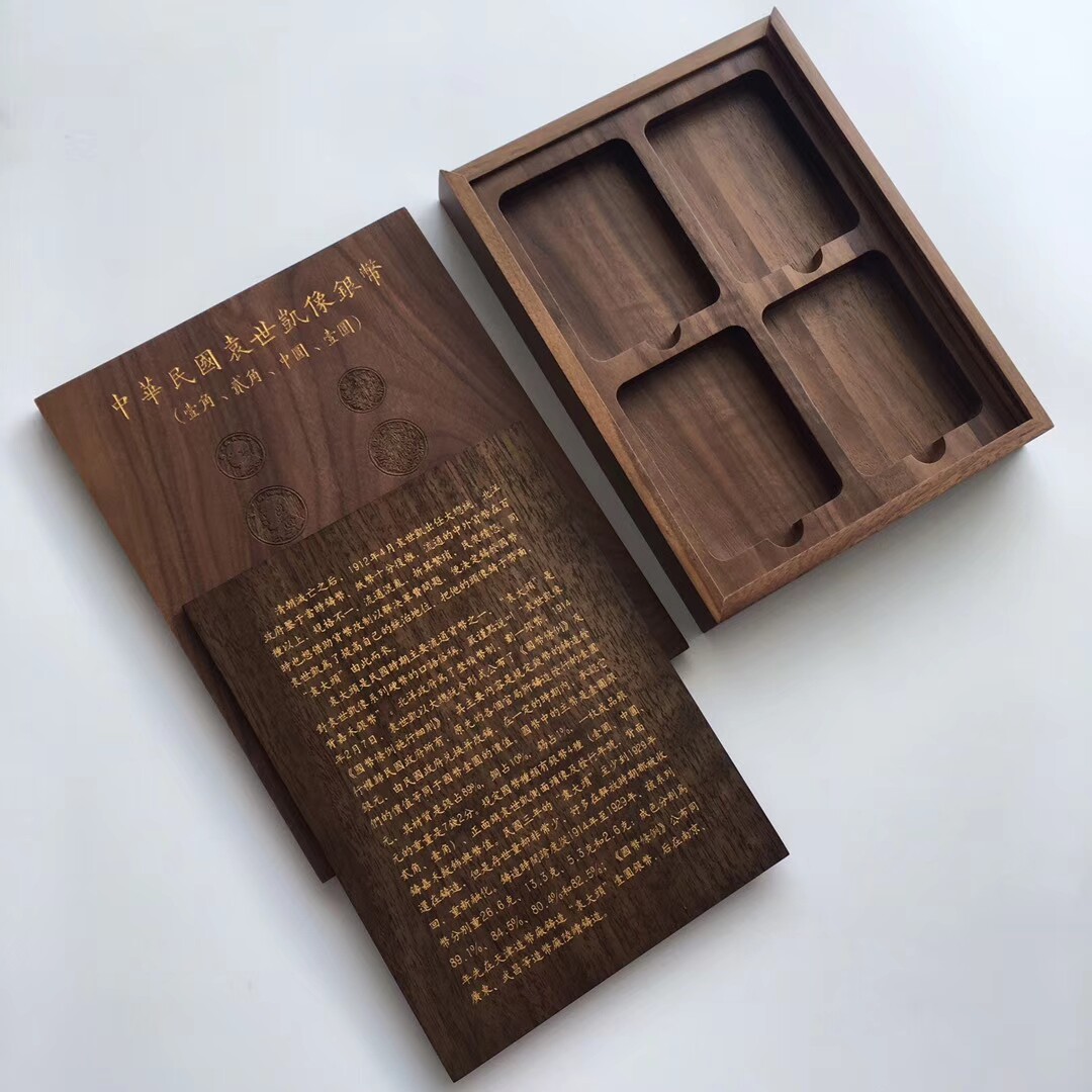 The old qianzhuang big head three-year set box black walnut 4 graded coins gift display box silver dollar coin collection box