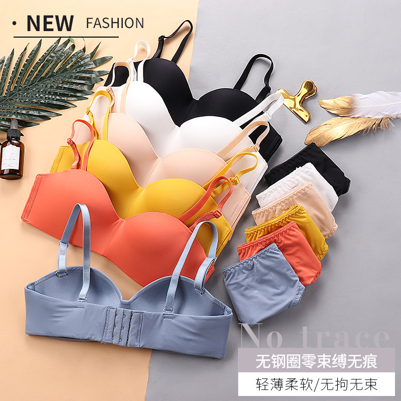 Underwear female girl no rim thin section small chest gathered adjustment type closed pair of breasts Sexy large size bra bra set