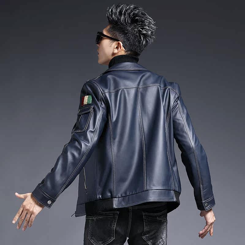 Henning genuine leather leather clothing male tide 2019 youth turned over sheep leather Outer cover Korean version of men's locomotive leather jacket handsome