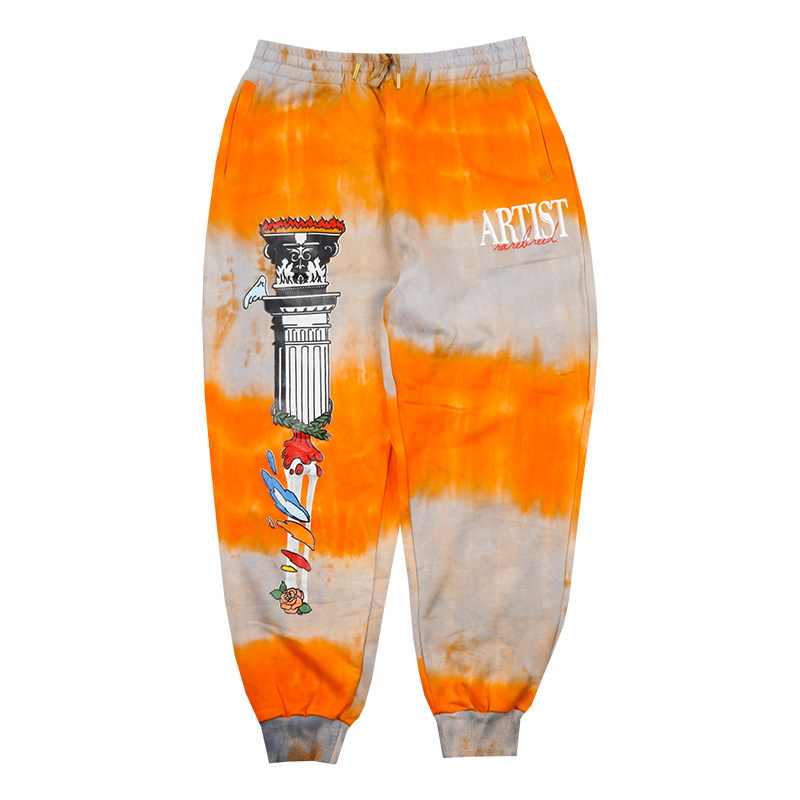GRAF original brand artist Artist tie-dye cracked foam three-dimensional plaster autumn and winter terry orange gray trousers