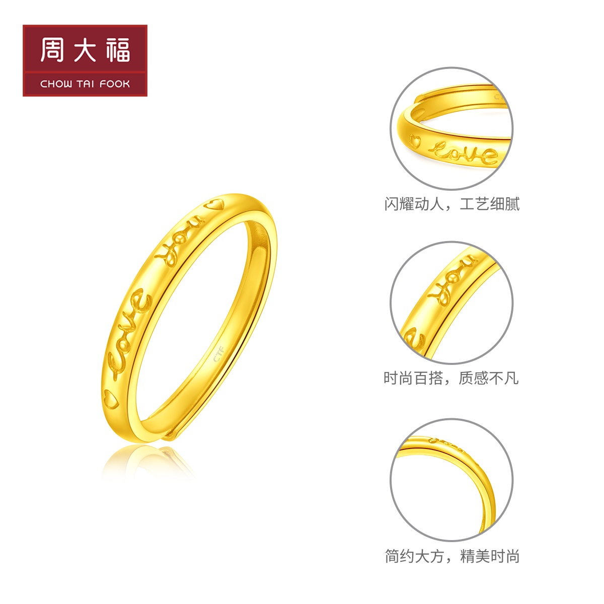 Chow Tai Fook sweet love love you couple pure gold gold ring price can be adjusted EOF185 gift