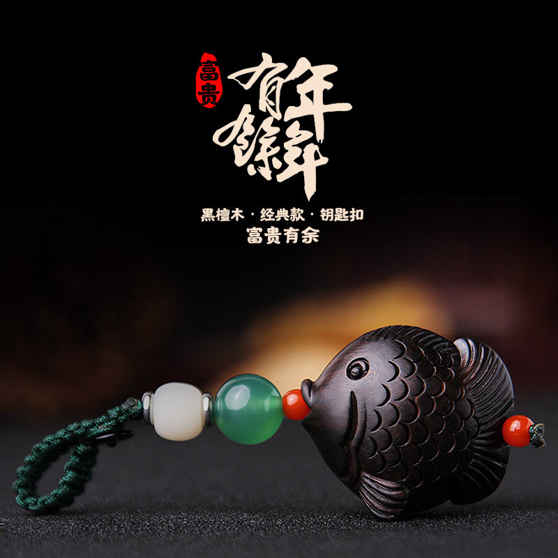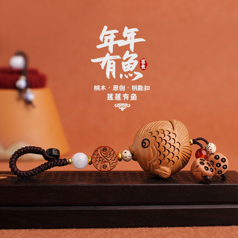 Peach Wood Car Key Pendant Key Button Male Key Necklace Woman small bag hanging accessories Cute Creative Black Sandalwood