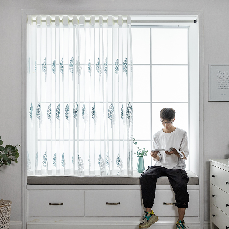 Curtains Non-Stiletto Mounted Telescopic Rod Yarn Curtain Light Transmission Opaque Man Shading Bedroom Balcony Yarn Drifting Window White Sand