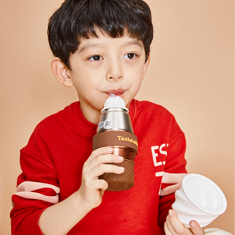 Fan Rice Ice Cream Insulated Cup Children Water Cup With Straw Cute Kindergarten Baby Kettle Portable Stainless Steel