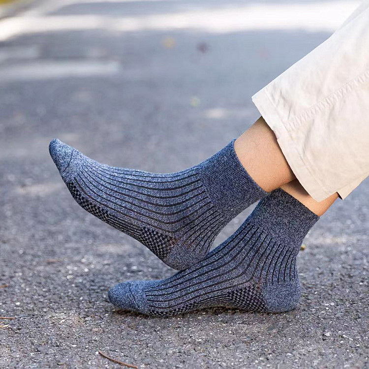 Bring a few pairs of Japanese single autumn winter men's pure color minimalist breathable cotton midbarrel socks thickened thermal cotton socks