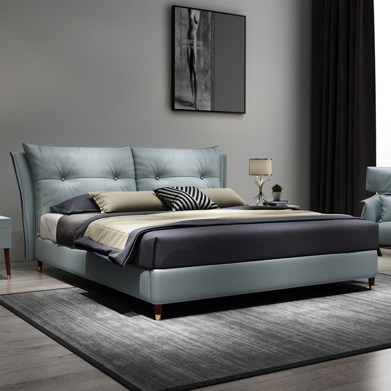 Hong Kong-style light luxury ins Net red bed simple modern double bed 1 8 meters Nordic leather bed wedding bed master bedroom 2 2 meters