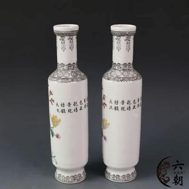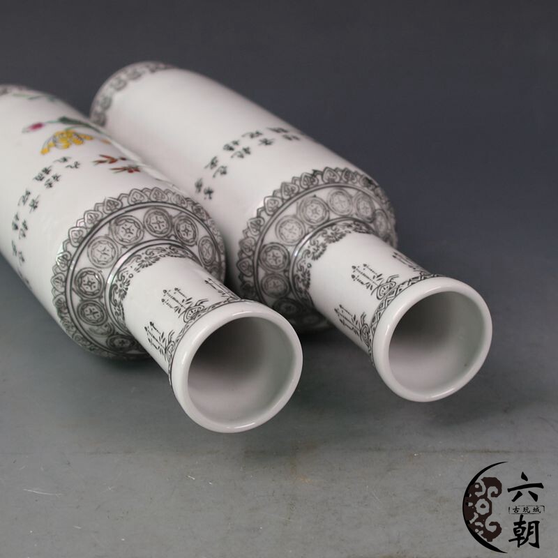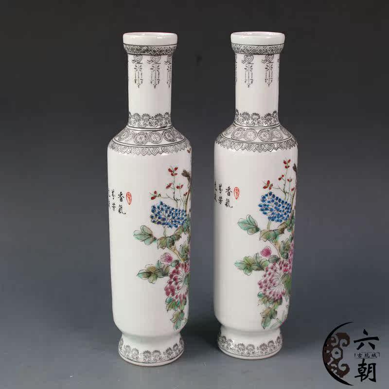 Antiquity Collection Antique - De Ceramics Pastel Flower and Bird Vase a pair of Bogu frame decoration