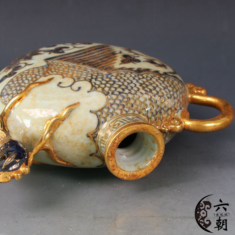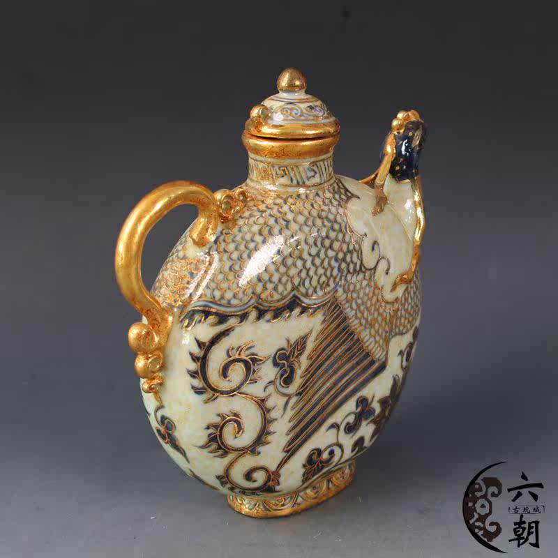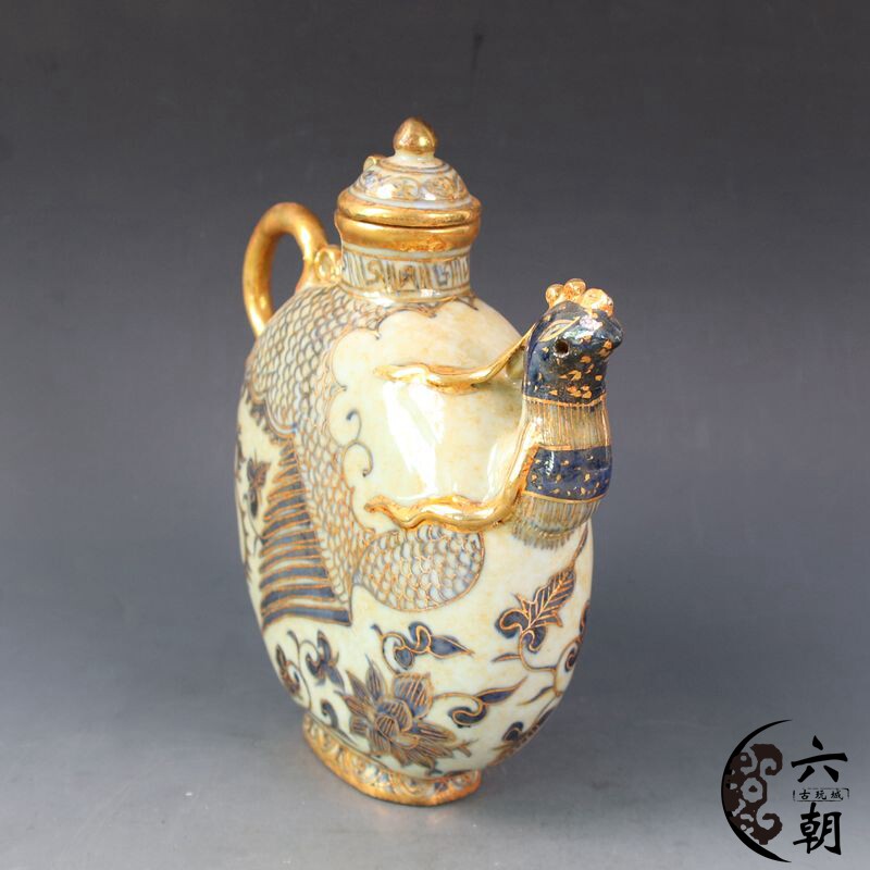 Ancient play collection of antique Jingdezhen ceramic ware made of old sketches of golden pinewood Teapot Wine Maker's Decorative Supplies