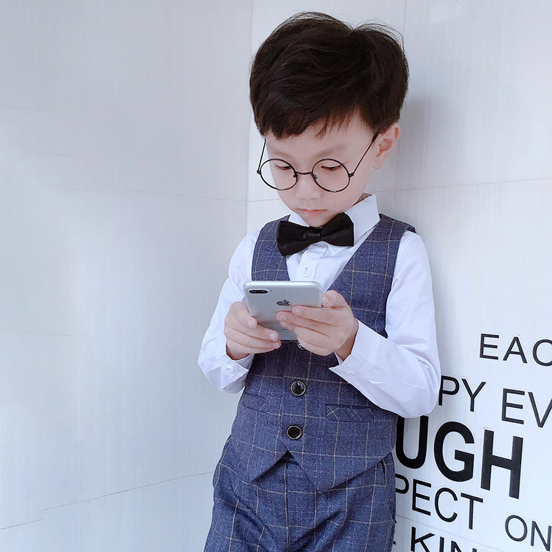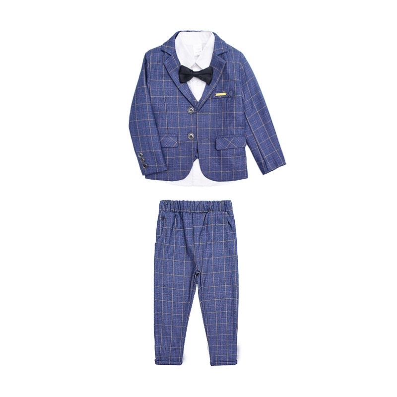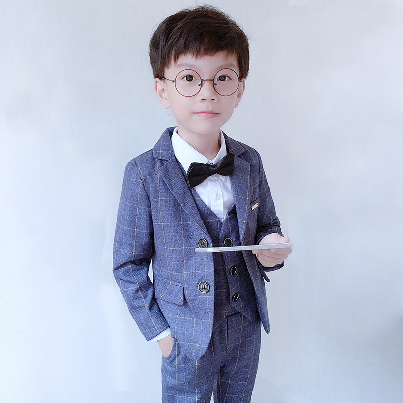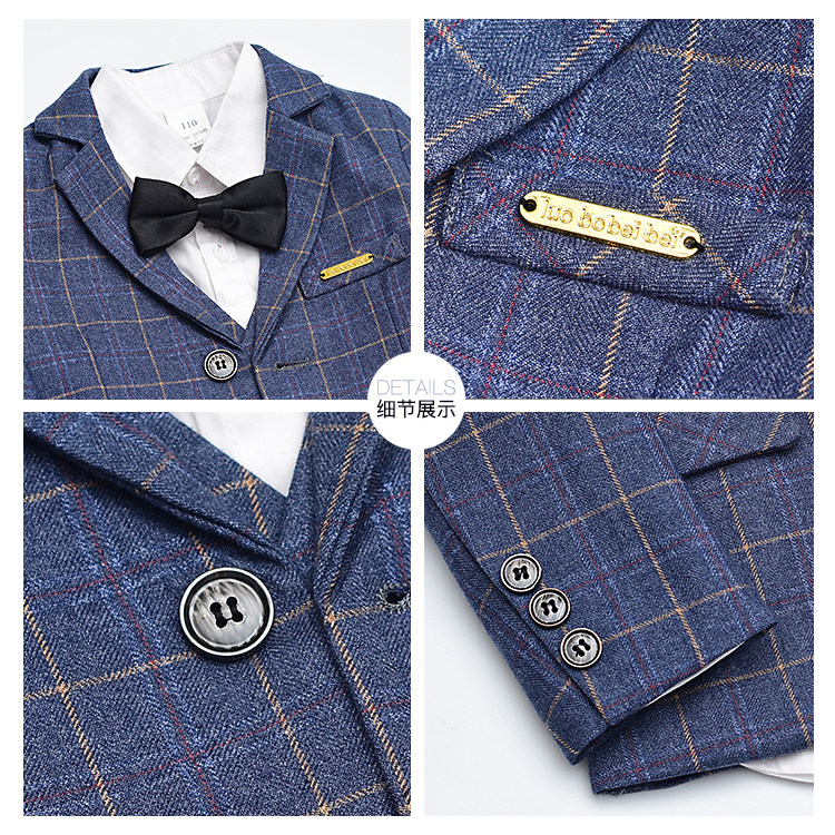 Boy suit plus suede autumn winter children small suits of three sets flowers children gowns Inlenty windy and casual Western clothes