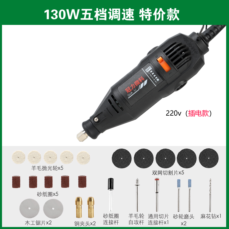 Crown power mill Mini small wood carpentry jade engraving power tool handheld miniature electric drill polished grinding machine