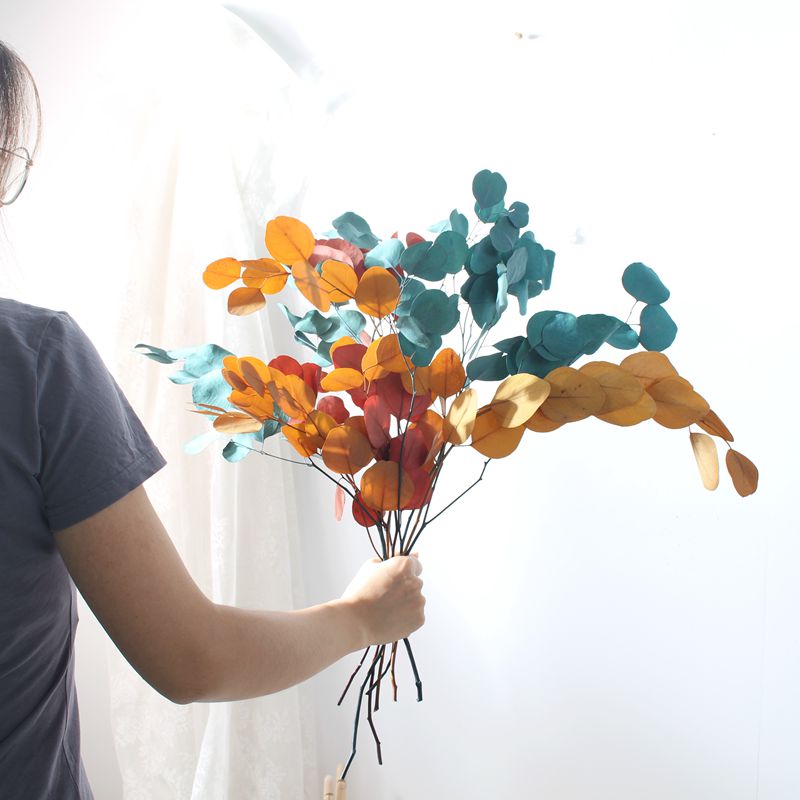 Yellow orange red leaves Nordic light luxury natural dry pattern board room decoration eternal life Eucalyptus leaves Apple leaves