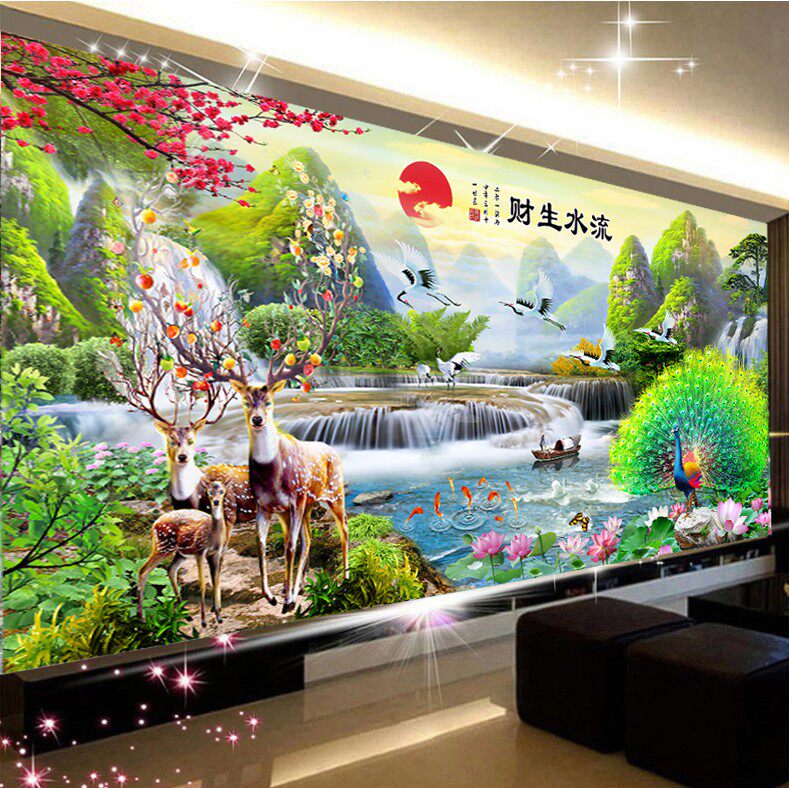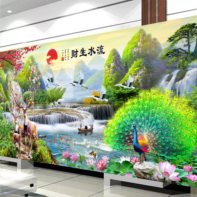 5d diamond painting 2021 new living room full of diamonds Elk running water making money scenery Peacock large dot paste diamond cross stitch