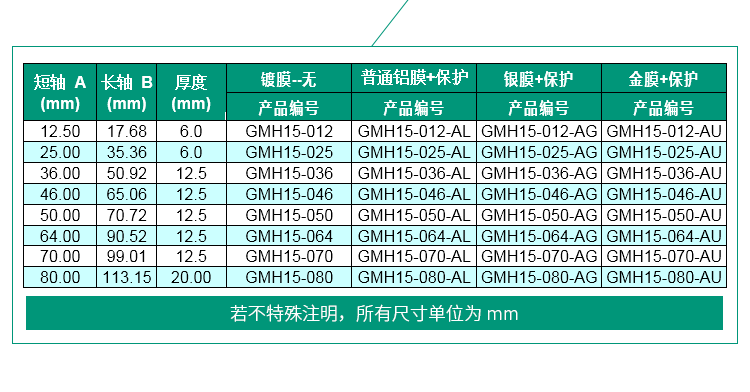 GMH15-K9 Elliptical Reflector Ordinary Aluminum Film High Precision Reflector Optical Research Experiment High Reflective Mirror