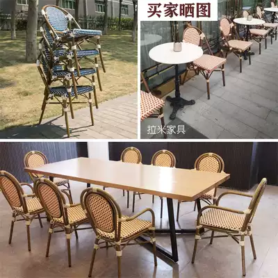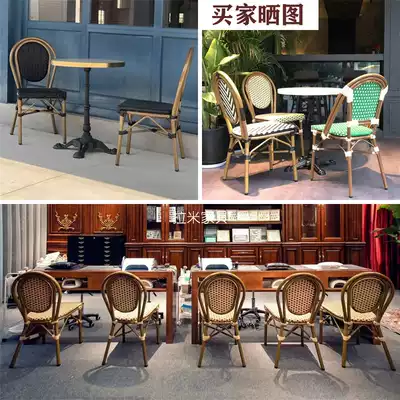 Nordic bamboo and rattan dining chair balcony with armrest back chair Net red shop leisure rattan chair coffee shop outdoor table and chair K134