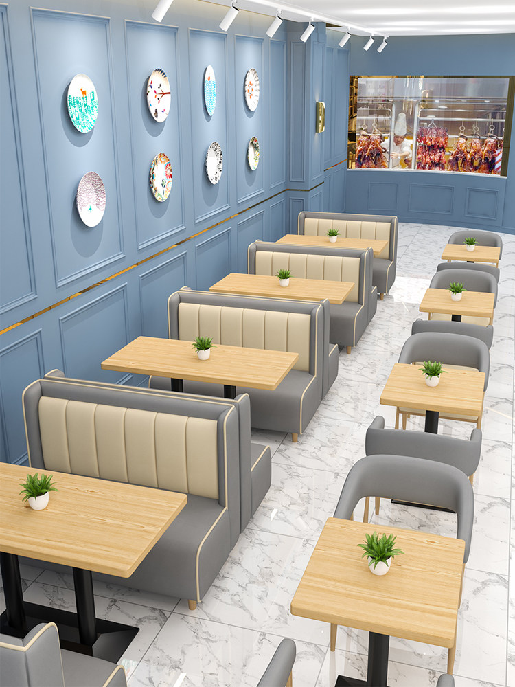 Customized western restaurant cafe against the wall card seat sofa milk tea shop dessert snack burger bakery table and chair combination