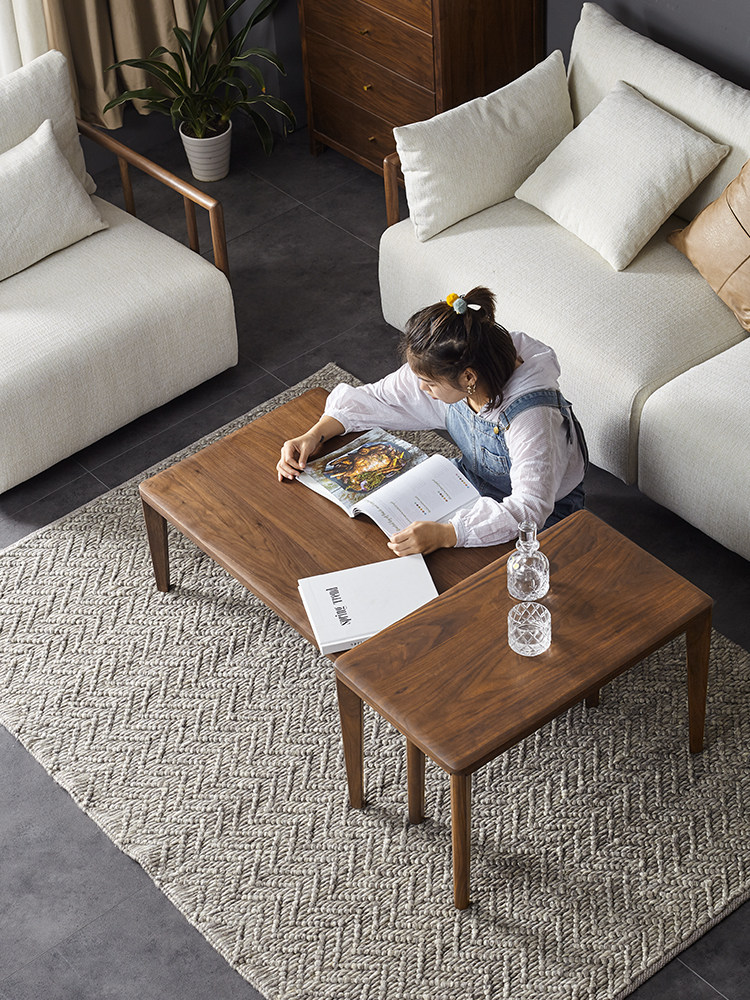 Mumu furniture Japanese style all solid wood coffee table modern minimalist small apartment coffee table living room black walnut tea table