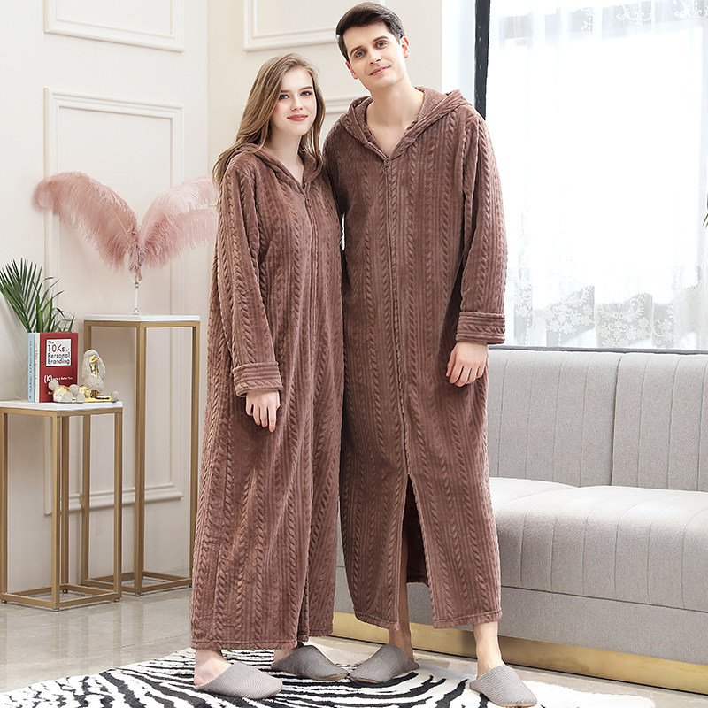 Autumn/winter Lions Couple sleeping robes Men and women Flannel Velvet Robes Thickened lengthened Coral suede Large size Size Sleeping Dress