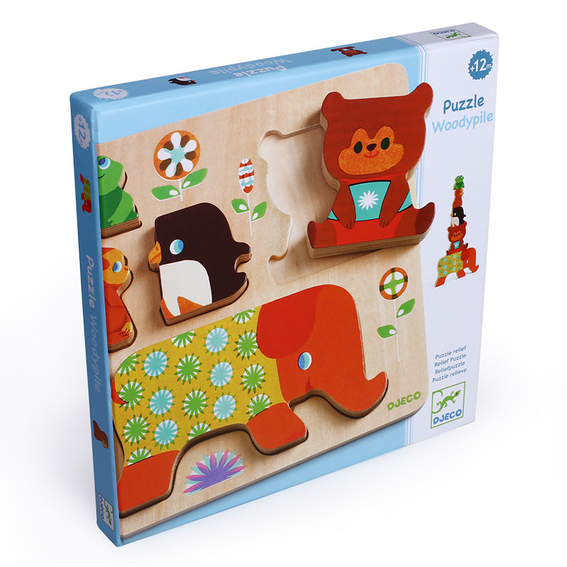 djeco animal pairing wooden hand grip plate embedded plate stereo puzzle young child 1-2 years old taught puzzle children's toys