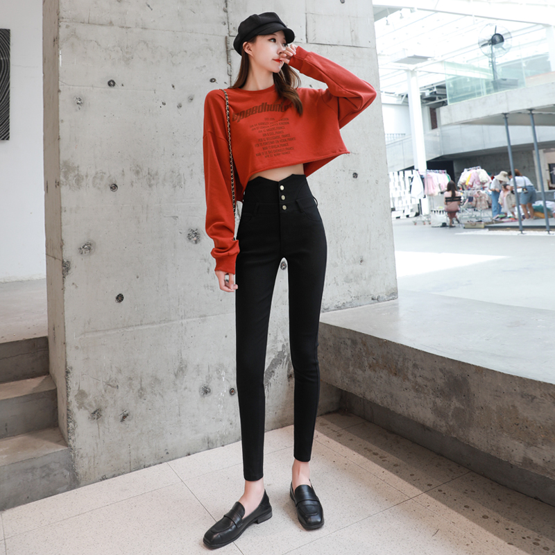 High waist pants female spring and autumn thin wear 2023 new fat fat mm slim black pants