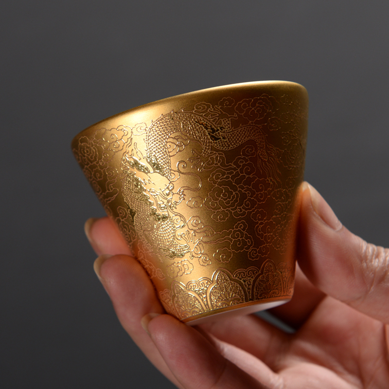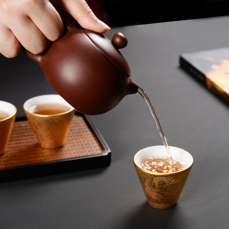 Durish Gold Tea Cup White Ceramic Cup Dedetized Ary Crea Pure Gold Gold Master Single Cup Kung Fu Tea Family
