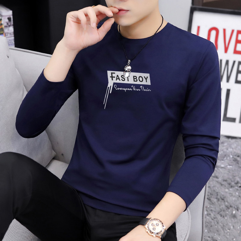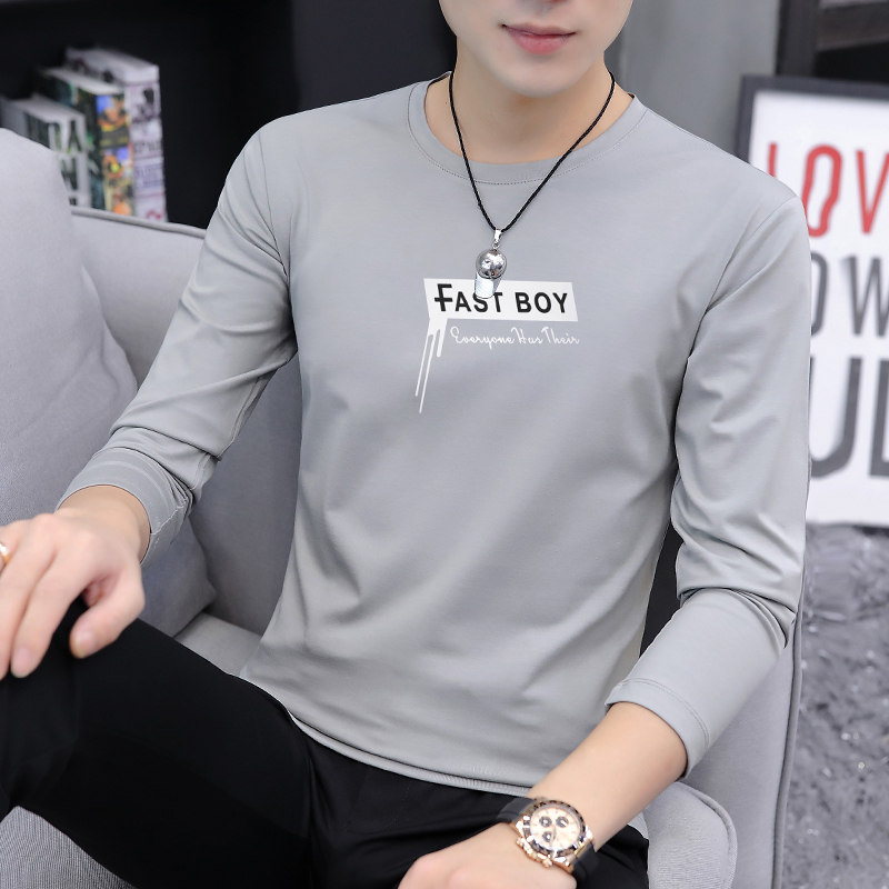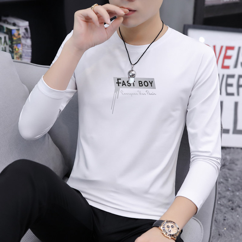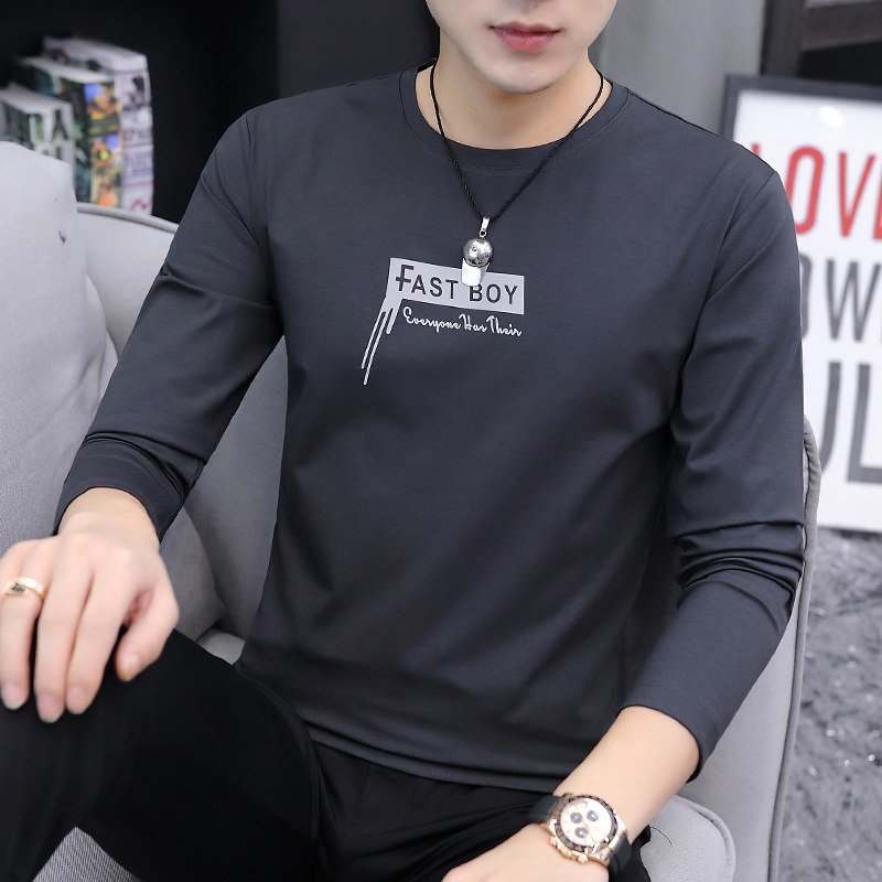 Pure cotton men's long-sleeved t-shirt 2021 new spring clothes trend youth autumn clothes wild casual base shirt