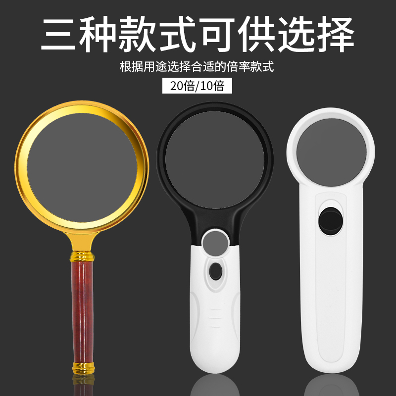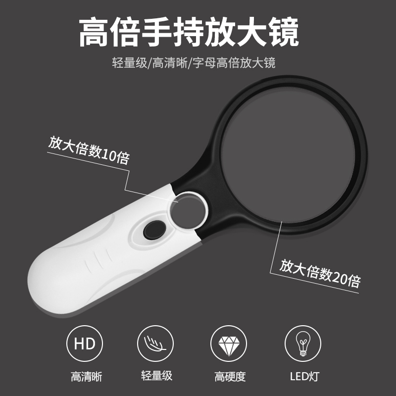 Magnifier with lamp handheld high definition with LED light 20 times 10 times Read the portable old man Read the magnifying glass
