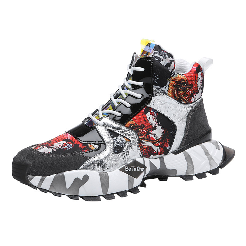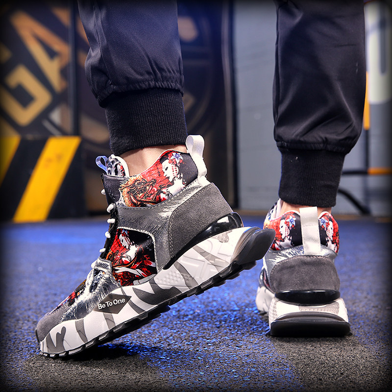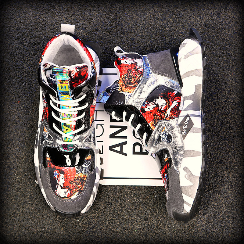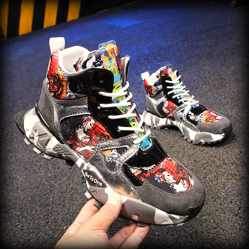 High-top sneakers men's 2022 spring and autumn new ins all-match dad shoes casual men's shoes thick bottom graffiti trendy shoes