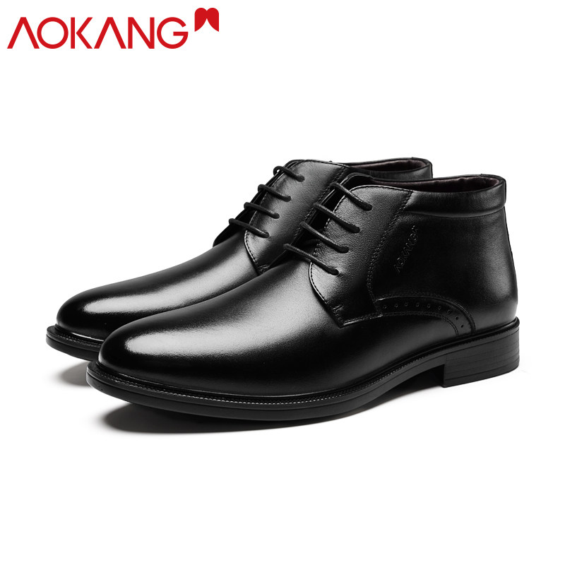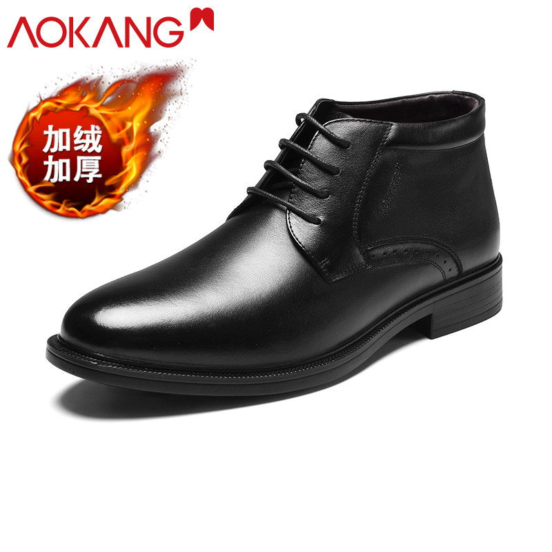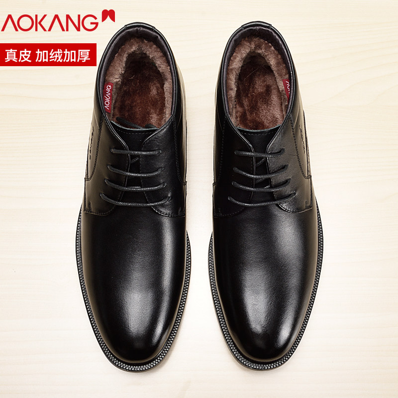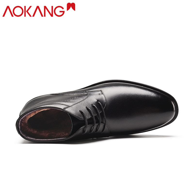 Okom Cotton Shoes Winter 2021 New Business Positive Dress Cotton Leather Shoes Men Genuine Leather Casual Plus Suede Warm Cotton Shoes Men